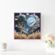 Relógio Quadrado Girafas sob a lua de cheio pela costa