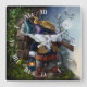Relógio Quadrado Gnome cat com martelo e lâmpada vai funcionar