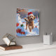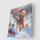 Relógio Quadrado Goldendoodle correndo em neve com chapéu de Natal