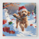 Um Goldendoodle fofo corre brincalhão através da cena de inverno nevado, vestindo um chapéu vermelho festivo de Natal. Este design animado destaca a casaco, a natureza afetuosa e a personalidade alegre da raça enquanto captura o espírito alegre da época de férias. Um emocionante momento de inverno cheio de charme festivo.