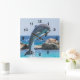 Um belo golfinho saltando alto nesses maravilhosos relógios de parede. Você escolhe o estilo quadrado ou redondo.
