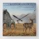Relógio de Parede Quadrado Grande Confronto de Veado Buck Na Fazenda