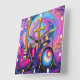 Esta impressionante imagem quadrada apresenta uma cruz Celta formada por guitarras elétricas, simbolizando a fusão da música e da fé. Os guitarras, com suas intrincadas designs e cores vibrantes, criam uma poderosa declaração visual, colocada contra um fundo escuro e texturizado que melhora o impacto dramático e espiritual da imagem.