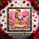 This delightful square wall clock features a charming digital illustration of a cheerful baby giraffe with big, blue eyes and a friendly smile. The giraffe is set against a whimsical pink and white background filled with floating red hearts and blooming floral accents. A flowing parchment banner at the bottom carries the festive message "Happy Valentine's Day!" in bold red script. The scene is framed by a lush garden of pink and red flowers, creating a warm and celebratory atmosphere. The artwork is housed within a modern black wood-grain frame with bold white numerals for clear visibility. This functional home accessory is a perfect decorative piece for nurseries, playrooms, or as a heartfelt gift for Valentine Day, bringing a touch of playful romance to any interior wall.