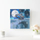 Relógio Quadrado Herão Azul, Lua Cheia e Cena de Fantasia em Cascat
