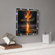 This incredibly moving and symbolic design powerfully conveys the theme of Flame and Water—the spiritual cleansing and empowering baptism of the Holy Spirit. The artwork, featured on a square wall clock, displays a vibrant cross made entirely of glowing, intense fire ascending dynamically from dark, deep, rippling water. The cross and the water's surface reflect the radiant light, emphasizing the divine presence and reality of the message from Matthew 3:11: "He will baptize you with the Holy Spirit and fire." The visual combination of the brilliant fire and the dark water symbolizes purification and the profound, transformative power of faith. The highest quality print and artwork used on the surface is so exceptional it creates a stunningly realistic tactile illusion; you could easily mistake the textures for genuine embossed metal or heavy, worn leather. This piece is a spectacular dedication to faith and the power of the Holy Spirit. this impressive, high-quality piece is a perfect gift for any devoted person, honoring their spiritual journey.