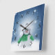 Relógio Quadrado Homem de neve com lenço verde pequeno
