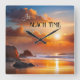 Relógio de parede com uma pintura colorida de um pôr do sol na praia. Um belo relógio para uma casa de praia ou um presente para um amante de praia.
