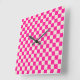 Relógio Quadrado Hot pink and tan checkerboard pattern