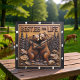 This highly dimensional square wall clock features an illustration of two brown bears hugging in a dense forest setting. The entire design is rendered in rich brown and orange tones, strongly suggesting a deep carved relief or Engraved Wood Look. The bears have highly textured fur and are surrounded by stylized pine trees, large boulders, and mountain peaks in the background. The carving style creates a strong three-dimensional effect, emphasizing the depth of the forest scene. The large, three-dimensional embossed text "BESTIES FOR LIFE" is carved across the top. The clock face features a simple clock face border with large, white, numbered tick marks (1 to 12) integrated into the outer frame. The artwork is surrounded by a thick, dark brown decorative border that resembles a black wood frame.