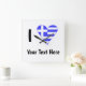 Adicione seu texto para dizer o que seu coração grego ama. Design usa uma aparência escura, em forma de coração, Sinalizador de Grécia em vez da palavra LOVE. Adoro Atenas? Creta? Xania? Baklava? Moussaka? Você também pode mudar a cor do texto, se preferir uma cor diferente.