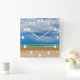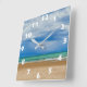 RELÓGIO QUADRADO ILUSTRAÇÃO MODERNA DAS PRAIAS COM NÚMEROS BRANCOS