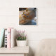 Este é um belo e engraçado painel laranja perto de um grande relógio de parede quadrado!