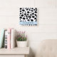 Relógio Quadrado Impressão, Pontos De Vaca, Preto E Branco, Seu Nom