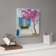 Uma pintura em acrílico de algum lugar na Grécia. Uma casa lavada com uma janela azul. Gerânios e flores silvestres. E uma Bougainvillea crescendo a parede. Isto seria um presente de excelente. Para alguém que ama a Grécia e as ilhas.