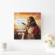Esta cara inspiradora do relógio apresenta Jesus Cristo com mãos apertadas, olhando para o céu em meio a uma poderosa luz divina ouro. A frase profunda de "Ephesianos 2:10" diz: "Porque nós somos a obra de Deus, criado em Jesus Cristo a fazer boas obras, que Deus preparou antecipadamente para nós". Os algarismos negros marcam as horas, misturando o propósito divino com um lembrete diário do chamado espiritual.