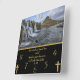 Dourada Fé Cristã uma cachoeira num vale com céu azul e água azul com o texto amarelo dizendo. Por Deus tanto amou o mundo que ele deu a seu filho e único John 3:16