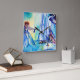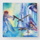 Colorida, espirituosa, romântica, simbólica, pintura contemporânea de aquarela em azul-claro, rosa, vermelho, roxo, violeta, branco para uma lenda espiritual, mística celta de Alessandro Lumini 1989. Este design legal e artístico também é um belo presente para ocasiões especiais, aniversários, casamentos, Natal, feriado, Dia de os namorados Época de Gras (Terça-feira gorda). Vivien, esta misteriosa fêmea deu a espada a Arthur, Excalibur. Ela roubou Lancelot quando ele era criança e o curou quando ele ficou louco. Ela pode ser uma divindade do lago Celta na origem, talvez do mesmo tipo que as fadas do lago Gwagged - no folclore do galês moderno. Vivien pode muito bem ter sido a Dama do Lago nas Lendas e histórias de Arthurian. Ela, às vezes chamada Nineve, Nimue, Niniane etc., é mais conhecida como a mulher que selou Merlin em uma caverna ou em uma árvore.