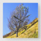 Um design fotográfico de uma árvore solitária em um morro.