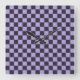 A vibrant checkered pattern with alternating black and lavender squares creates a bold, symmetrical grid. The design is balanced and visually striking.