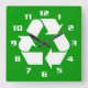 RELÓGIO QUADRADO LEGAL SÍMBOLO DE RECICLAR BRANCO VERDE