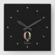 Relógio Quadrado Letra Q do Monograma Botânico Elegante