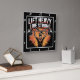Este relógio de parede preta apresenta o texto "LIFT HEAVY LIVE STRONG" em uma fonte branca, em negrito, ligeiramente angustiada, no topo. Abaixo do texto está um gráfico de um indivíduo muscular, que parece ser um homem de pele clara, levantando poderosamente uma campainha em cima. O fundo tem um design de explosão dinâmico em tons de laranja e amarelo, sugerindo força e energia.