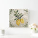 Linda Ripe Lemons em um relógio elegante, rústico e vintage. Um ramo único europeu gravado de folhas verdes de cheio com um limão inteiro e uma metade de limão suculenta num fundo texturizado de cinza neutro. Este é um excelente de sotaque a qualquer cozinha ou pátio inspirado no campo italiano ou francês! Veja a nossa coleção Rustic Vintage Lemons para os itens correspondentes!