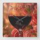 Tão bonito, um copo de vinho tinto com belas rosas no fundo. Um belo relógio de arte do vinho.