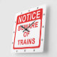 Relógio Quadrado Linha férrea, Cuidado com o sinal dos trens