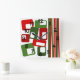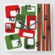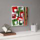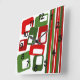 Este relógio de parede tem uma design de Natal moderna do século médio de linhas e retângulos em tons retrorados de vermelho e verde.