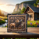 This dramatic square wall clock features a highly dimensional, close-up illustration of a brown lion with an expressive face and a striped zebra standing closely together. The entire design is rendered in muted brown, tan, and dark leather-like tones, strongly suggesting a deep sculpted relief or Sculpted Leather Look. The lion has a detailed mane and is positioned on the left, while the zebra is on the right, appearing happy with prominent stripes. They are surrounded by an elaborate wreath of gnarled, dark tree roots and stylized leaves carved into the perimeter. The background is a dark, heavily textured leather panel. The large, three-dimensional embossed text "BESTIES FOR LIFE" is carved across the top center in a bold, golden serif font. The clock face features a simple clock face border with large, white, numbered tick marks (1 to 12) integrated into the outer frame. The artwork is surrounded by a thick, dark brown decorative border that resembles a black wood frame.