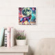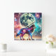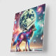 Relógio Quadrado Lobo Cósmico com Elementos Galácticos e Lua