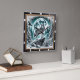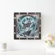 Um relógio maravilhosamente desenhado mostrando um lobo em uma floresta nevada com uma lua brilhante. Decorado com cores vibrantes e detalhes complexos, combina funcionalidade com arte inspirada na natureza.