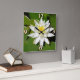 10,75" x 10,75" pulso de disparo de parede acrílico do quadrado com uma imagem de uma pintura da aguarela de uma flor de lótus brancos espectacular. Os lótus brancos representam o estado de pureza mental espiritual da perfeição e do total (bodhi). Veja a coleção inteira do pulso de disparo das flores & das plantas na seção HOME.