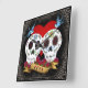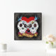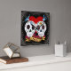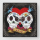 Dois pequenos e felizes crânios de açúcar, pássaros azuis e rosas do estilo da tatuagem, e uma faixa que lê "Amor". Não fica mais romântico que isso! Dia do excelente dos Mortos, presente temático para casamentos e aniversários!