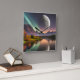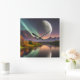 Lua pendurada sobre a paisagem montanhosa com Aurora Borealis refletida na água Autumn tree AI Art criada por minx267
