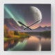 Relógio Quadrado Lua sobre Paisagem Montanha
