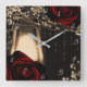Relógio Quadrado Luz de Lanterna Rústica e Rosas Vermelhas Florais