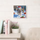Relógio Quadrado Malti Tzu correndo em neve com chapéu de Natal