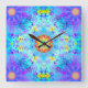 Relógio Quadrado Mandala do hippy da estrela azul modelada