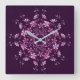 Relógio Quadrado Mandala. roxo floral