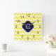 Relógio Quadrado Marinho Quatrefoil Azul Quevron Amarelo Monograma