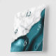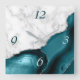O elegante e moderno mármore branco e agato lacrimogêneo aparados com falso brilho prateado combina-se neste luxuoso relógio de parede quadrada. Os números 3 e 6 aparecem em cinzas prateadas claras sobre o fundo agado, enquanto os números 9 e 12 aparecem em negros no mármore branco.