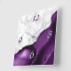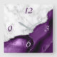 O elegante mármore branco e agato roxo, aparados com falso brilho prateado, combinam-se neste luxuoso relógio de parede quadrada. Os números 3 e 6 aparecem em cinzas prateadas claras sobre o fundo agado, enquanto os números 9 e 12 aparecem em roxo escuro no mármore branco.