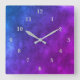 Relógio Quadrado Mármore-rosa-púrpura-azul, arco-íris