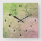 Relógio Quadrado Mármore verde rosa, arte de arco-íris
