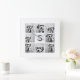 Relógio Quadrado Monograma personalizado de 8 imagens preto e branc