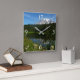 Relógio Quadrado Monte Rainier Lake Refletido com flores selvagens
