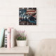Relógio Quadrado Moose Head contra a bandeira e as montanhas americ